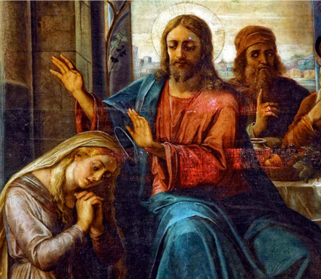 Mary Magdalene was from Magdala near the Sea of Galilee. She had been possessed by seven devils until Jesus cast them out of her. After that she became his follower and was one of the holy women who helped Jesus and the apostles.